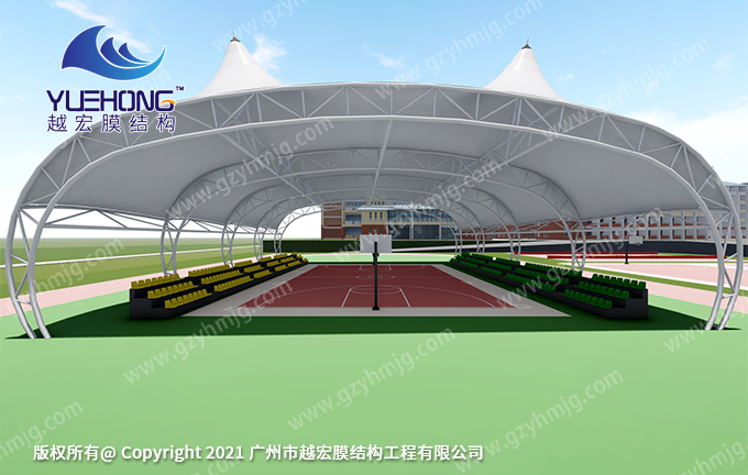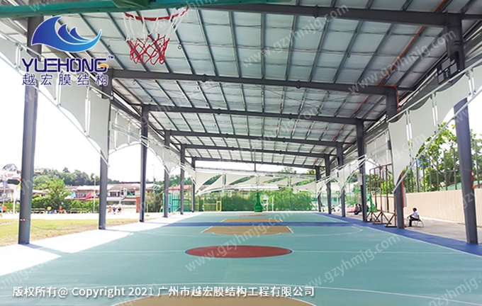 籃球場膜結構無墻壁,覆蓋面積大,空間感好,視野開闊,符合現代人對舒適、開放、自由的居住要求。