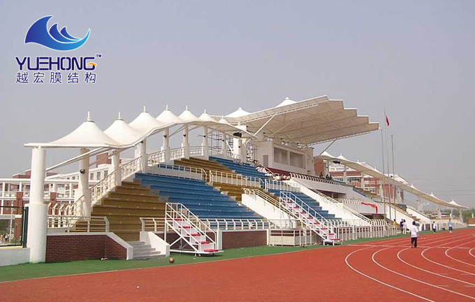越宏膜結構廠家的廣州膜結構看臺是由鋼結構和膜材組成,分別有張拉式膜結構、索膜結構、骨架式膜結構、空間結構式等供選擇,根據不同場景進行設計出個性化膜結構。