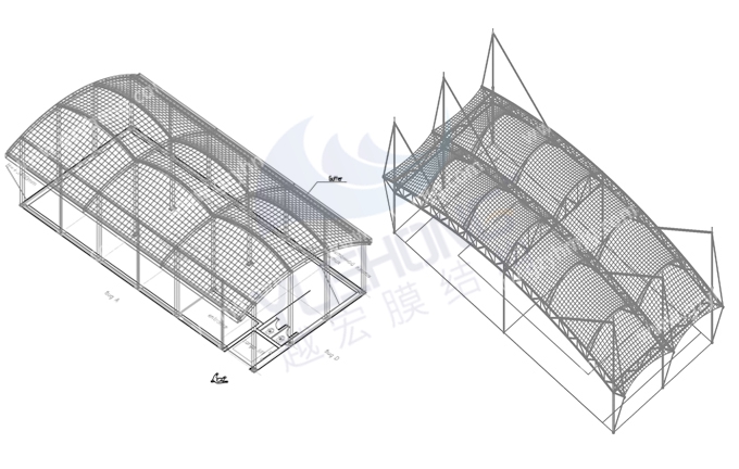 越宏膜結構廠家的廣州膜結構看臺是由鋼結構和膜材組成,分別有張拉式膜結構、索膜結構、骨架式膜結構、空間結構式等供選擇,根據不同場景進行設計出個性化膜結構。